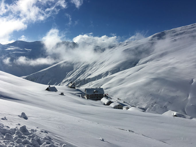 The Skier's Haute Route, officially known as the Urner Haute Route (named after the canton of Uri), usually takes 5 days. Starting from Andermatt, the first night is spent at a hotel along the road leading to the Furka Pass, which is closed in winter, so access is only possible by skiing. The second night is typically spent in a cozy small village that normally has no winter residents, but a young and friendly owner of a small inn opens the place for ski tourers when needed. At the end of the third day of the tour, you reach a traditional mountain lodge, and then the fourth night is spent in a larger hotel along the road that, however, is closed in winter when the road is shut. On the fifth day, you ski down to the Engelberg valley where the tour ends.