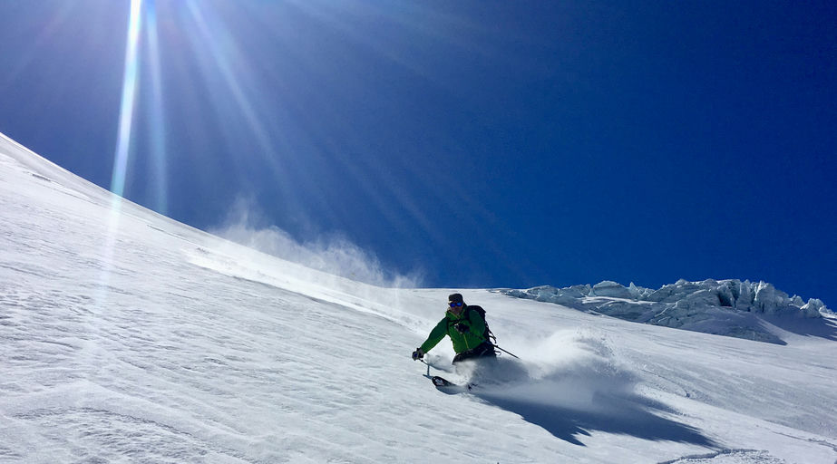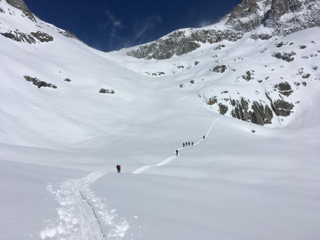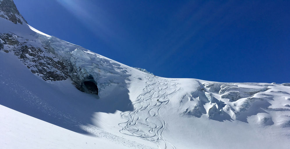 Both technically and physically demanding, the Skier's Haute Route is more challenging than its better-known counterpart. On a few occasions, skis are strapped to backpacks and climbers ascend with crampons and ice axes. Daily ascents are also generally quite substantial, with the longest days involving ascents of approximately 1.5 kilometers. However, the difficulty is somewhat mitigated by starting with easier and shorter days at the beginning of the tour, allowing the body to acclimate to the thin air and climbs. Nevertheless, the efforts are richly rewarded; often, excellent powder can be found on the northern-facing slopes.