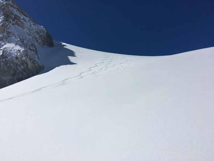 Keskiviikkona nousemme Cabane de Dixltä ylös Pigne d’Arolla -vuorelle, joka on koko vaelluksen korkein kohta eli vajaat 3800 metriä. Korkeuseroa nousulle on vajaa kilometri ja laskua kertyy melkein saman verran. Iltapäivällä saavumme Vignettes -nimiselle vuoristomajalle, joka on todella upealla paikalla. Maisemat hakevat vertaistaan. Pigne d’Arolla on suosittu helihiihtovuori, joten vaikka lasku onkin hieno niin valitettavasti harvoin pääsemme nauttimaan uusien jälkien tekemisestä, sillä helikopterit ehtivät huipulle ennen vaeltajia.