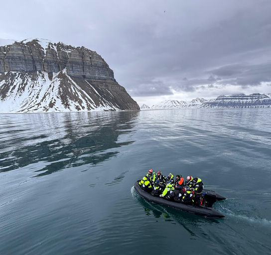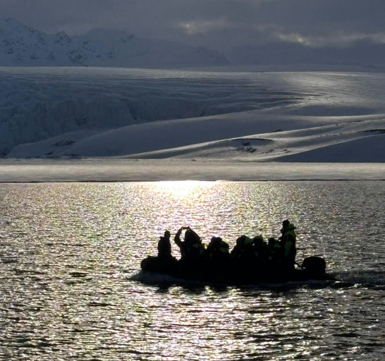 Lyhyet, noin 10 minuutin kenttäkuljetukset Longyearbyenin kentältä laivalle kuuluvat hintaan.
