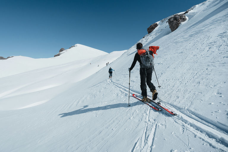 You can ski in varying snow and terrain conditions, including deep snow outside of groomed slopes. You have the stamina for a five to six-hour backcountry tour. On tour days, you will ascend approximately 1,000-1,200 meters, and on lift-assisted days, around 400-500 meters.