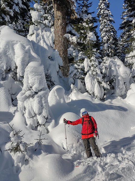 Päivien pääpaino on hissiavusteisessa puuterilaskussa – käytämme hiihtokeskusten hissejä niin paljon kuin mahdollista, jotta pääsemme nopeasti parhaisiin rinne- ja metsälaskuihin. Mutta kun helpoimmin saavutettavat puuterit on laskettu, siirrytään koskemattomille alueille – ja silloin tarvitaan touring-varusteet.