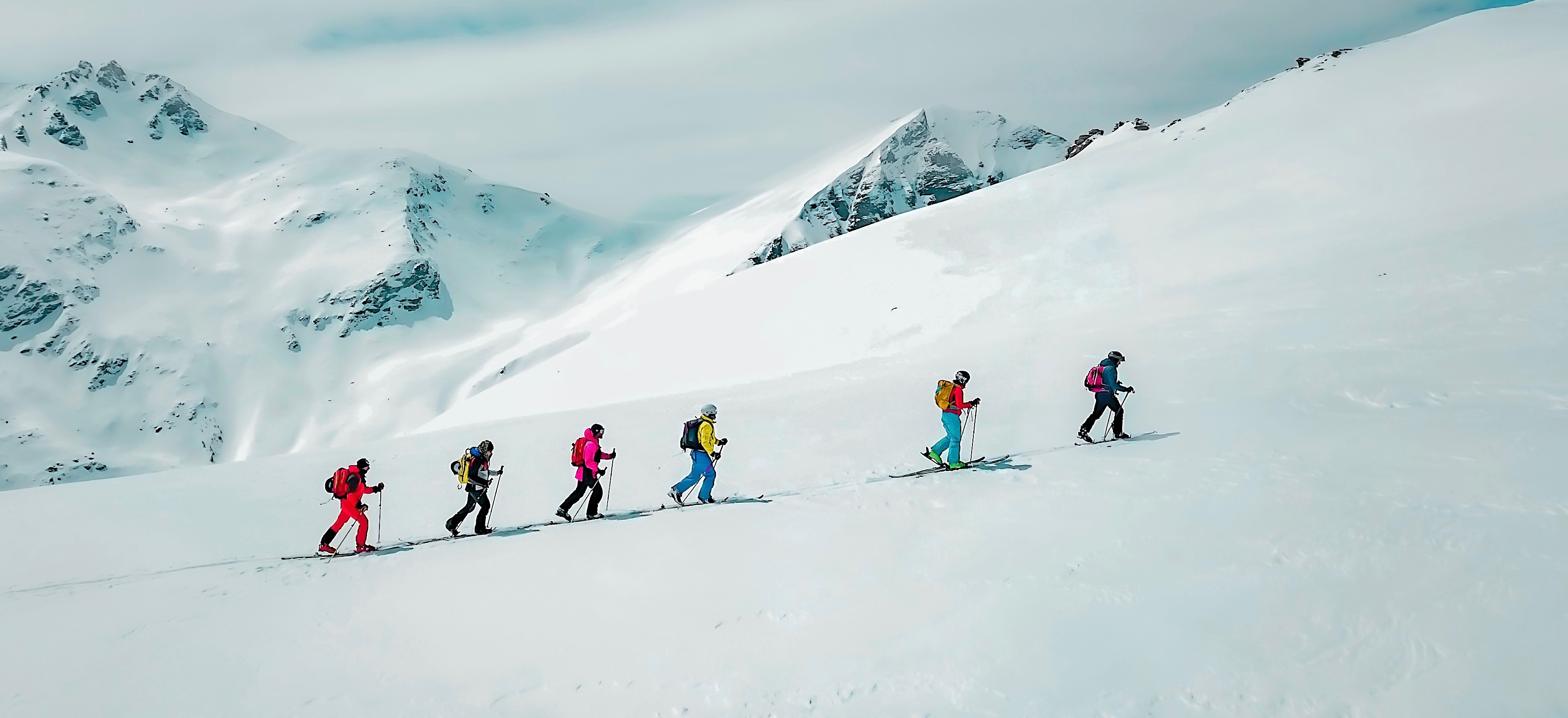 Osaat hiihtää vaihtelevissa lumi- ja maasto-olosuhteissa ja syvässäkin lumessa hoidettujen rinteiden ulkopuolella. Jaksat tehdä muutaman noin tunnin skinnauksen päivässä ja kahtena päivänä pidemmän, noin viiden-kuuden tunnin retken takamaastoihin. Nousumetrejä retkipäivinä tulee noin 1000.
